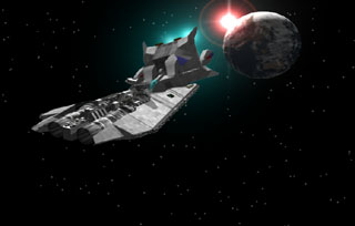 左の戦艦はLightWave3Dに標準でついてくるオブジェクトです。